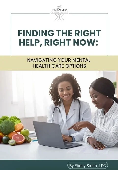 Self Care Strategy: A practical guide to well beingBy Ebony Smith$0.00 Ebook: Finding the Right Help, Right NowBy: Ebony Smith$4.99 Contact us.contact@thetherapydesk.co314-798-6238St. Louis, Mo